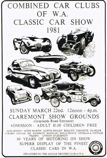 The Rolls-Royce Owners Club hosted the 1980 show at Fremantle Oval, on March 16th. By 1981 there were two Jaguar clubs and it was the Jaguar Drivers Club which ran the show that year (on March 22nd), using the Claremont Showgrounds. They changed the name of the show to the Classic Car Show and several new clubs displayed for the first time. By now, it was a very big event and the classic car movement in WA was growing rapidly.