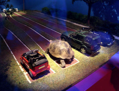 But after 40 years, the museum was getting very dated - rows of cars closely-packed and angle parked, behind plastic chains was no longer the way people wanted to see automotive heritage... See photo left. A bold move was made to completely refurbish the museum, incorporating the most modern concepts of exhibition. Stage set designers, architects and the most creative minds were set the task of putting together a museum which would enthral and challenge visitors. Certainly the collection, and other cars the museum had access to would provide amply good exhibits.